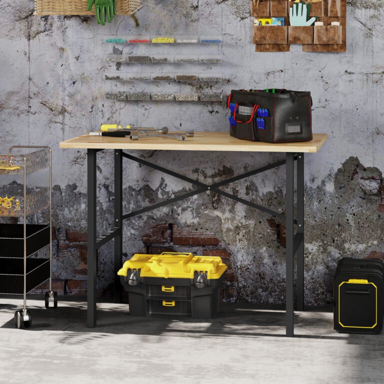HOMCOM Multipurpose oak wood work table, large tabletop will offer you enough workstation to repair or design, convenient and professional.