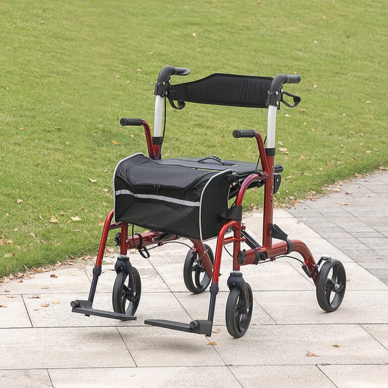 HOMCOM Rollator Walker with Seat, Folding Rolling Walker with 8″ Wheels, Walker for Seniors with Adjustable Height, Red | Aosom Canada