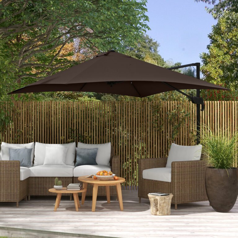 Using a crank mechanism for effortless opening and closing, the canopy can rotate a full 360 degrees to keep you covered all-day long.