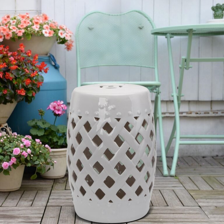 Outsunny 18″ Ceramic Garden Stool with Woven Lattice Design, Indoor & Outdoor Decorative Accent Stool, White | Aosom Canada