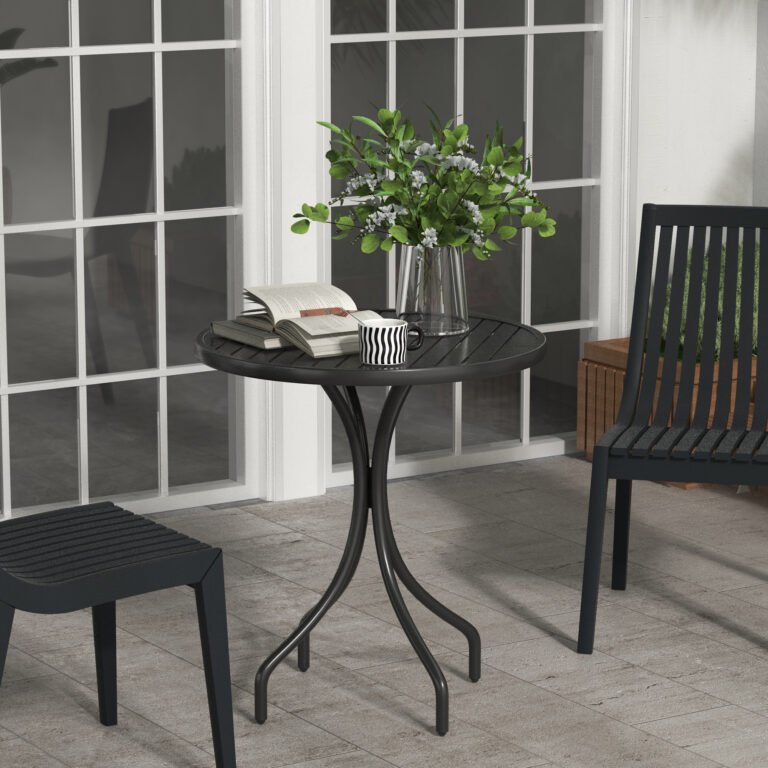 The slatted tabletop combines aesthetic and practical, preventing water building up and quick drying for a comfortable using experience.