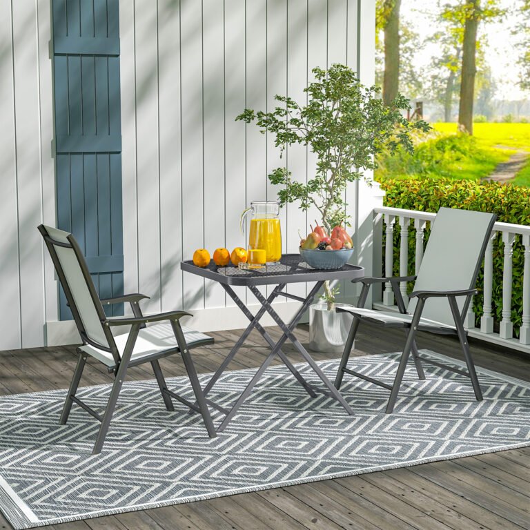 Upgrade your outdoor experience with this stylish and practical folding table from Outsunny! Designed with a grid rattan-like steel tabletop, the small outdoor table adds a modern and sleek touch to any outdoor or camping setup.