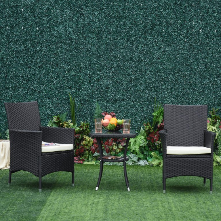 Outsunny 3pcs outdoor patio furniture set, which looks contemporary, offers a comfortable and stunning outdoor lounge.