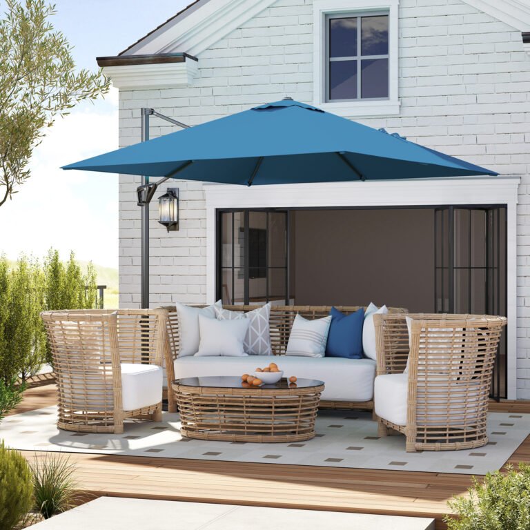 The 360-degree rotation provides full coverage, while the 5 adjustable angle positions of this umbrella allow various coverage options.