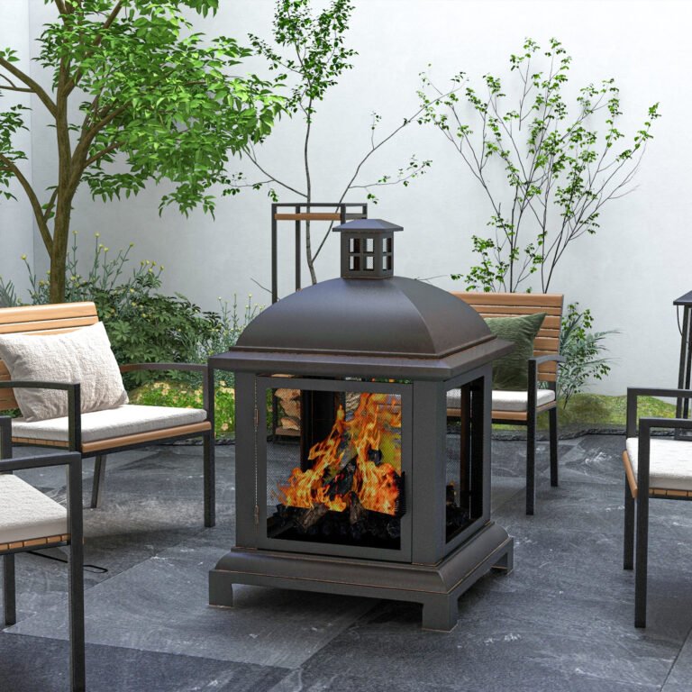 Outsunny Chimney Style Wood-Burning Fire Pit with Poker, 26″x26″, Elegant Black – Perfect for Cozy Evenings | Aosom Canada