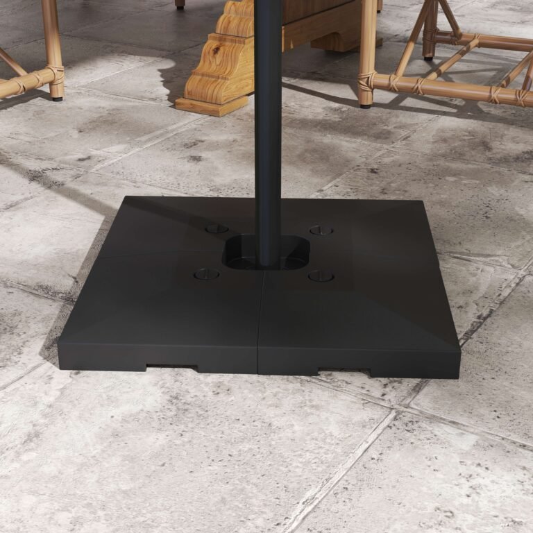 This four piece base from Outsunny is just what you’ve been looking for! Made from durable and weather resistant HDPE material, this umbrella base comes in four pieces, which sit over your umbrella cross base to keep it secure and stable on the ground.