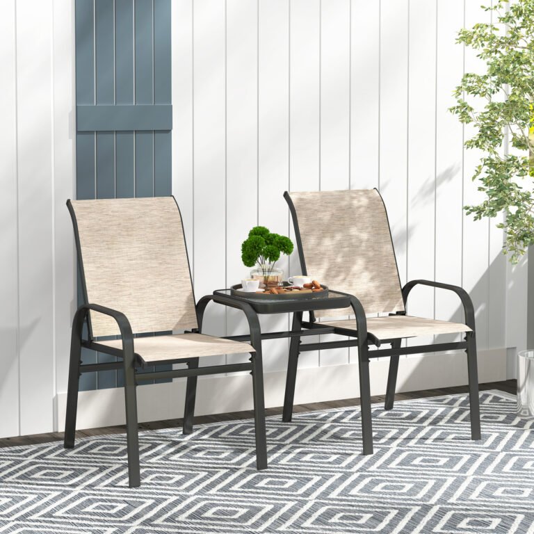 Enjoy warm weather with a friend using the Outsunny outdoor bench, combining two seats and a table.