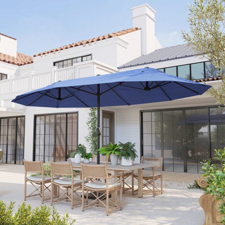 The Outsunny double sided patio umbrella is a perfect choice to add shade during warm weather conditions or anytime you need a little extra shade.