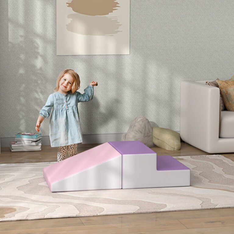 Soozier 2-Piece Climb and Crawl Activity Soft Play Set, for Toddler Preschooler Babies Indoor, Purple | Aosom Canada