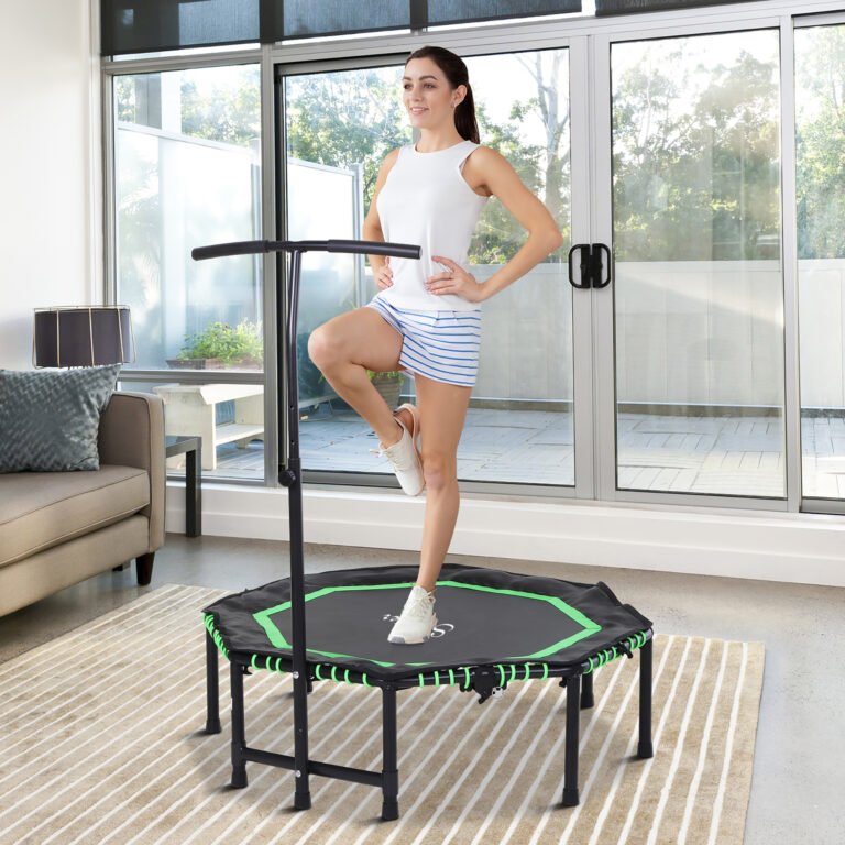 Soozier Foldable Mini Trampoline with Adjustable Handle Bar 48″ for Adult Fitness Workout Green | Aosom Canada